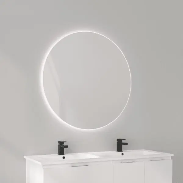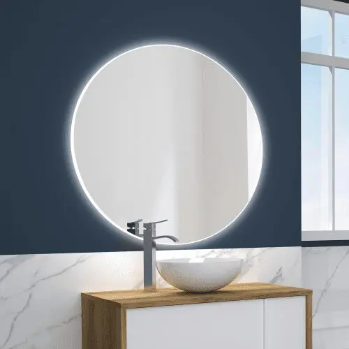Miroir à LED rond en aluminium 15 Watt Activation de l’éclairage par un interrupteur extérieur mural 230 V - 50 Hz - CE - IP44 Diamètre Ø70 ou Ø90 cm