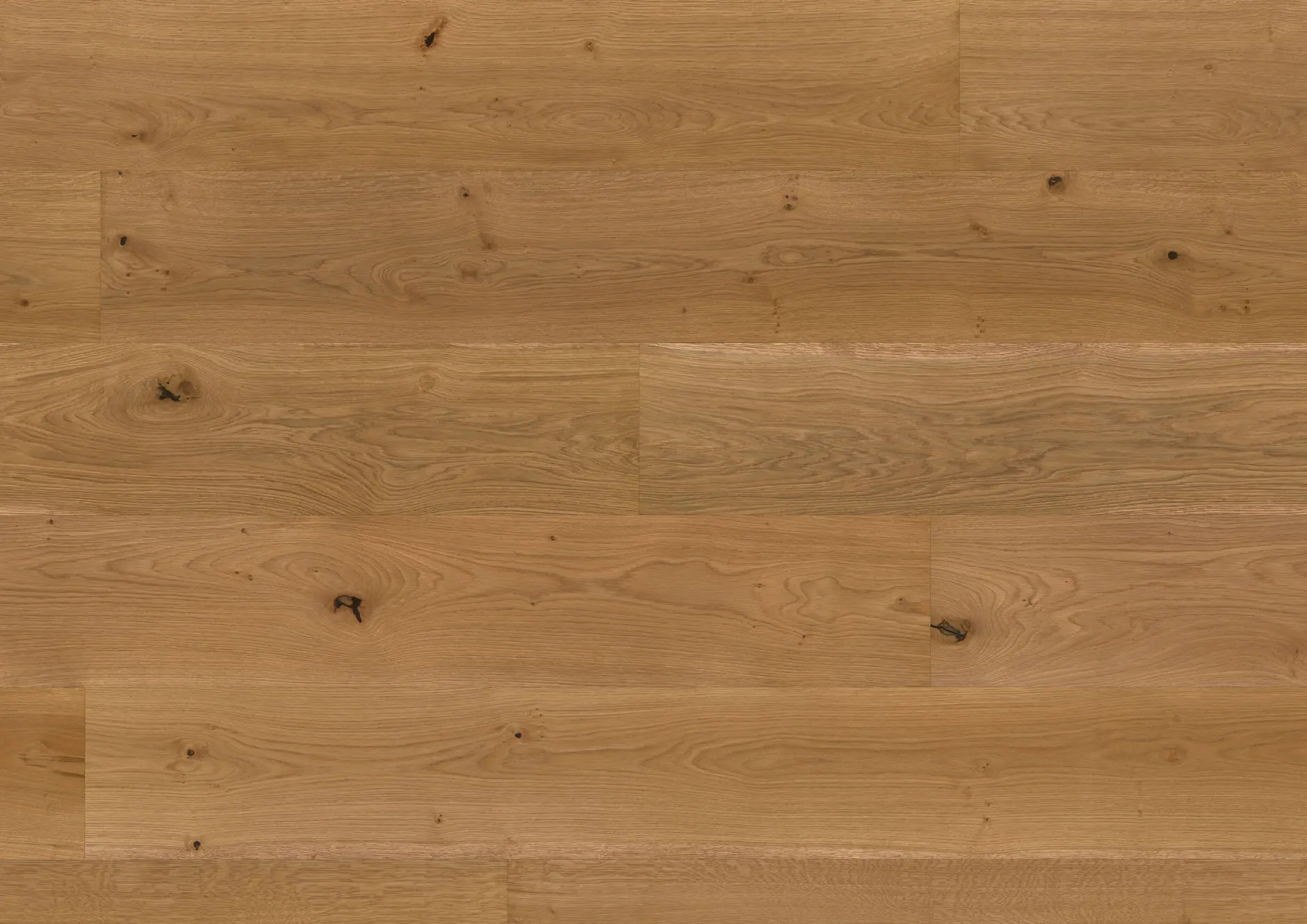 Contrecollé avec une couche d'usure de 0,4mm finition brossé huilé naturel.