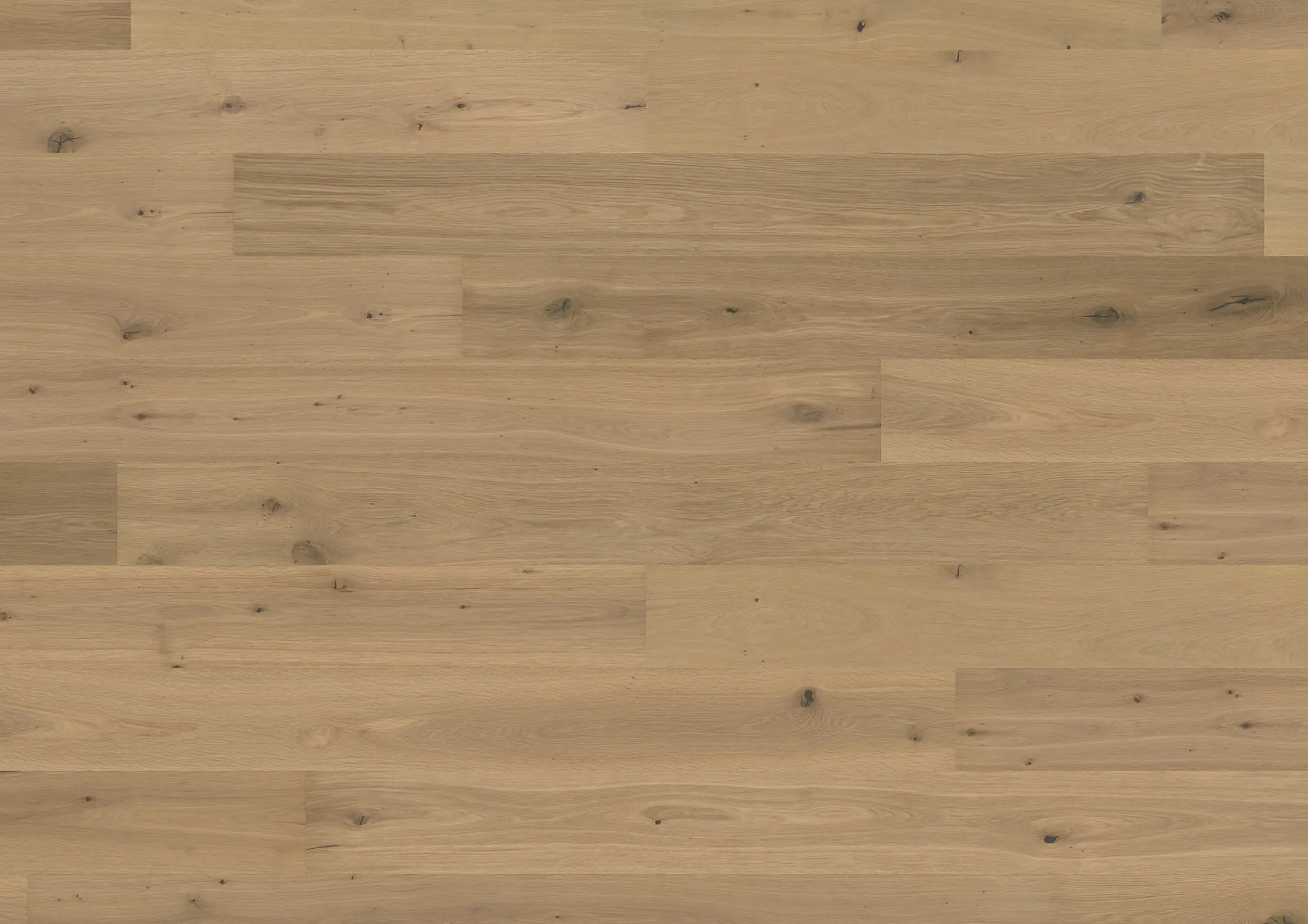 Contrecollé avec une couche d'usure de 0,3mm finition brossé, légèrement fumé, blanc naturel traité à l'huile.